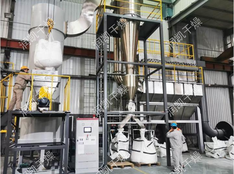 由于干燥室內(nèi)氣速高,物料停留時間短,達到高效、快速、小設(shè)備、大產(chǎn)量。 干燥室上部加裝陶析環(huán)及旋流片可以控制出口物料的粒度及溫度,以達到不同物料的終水份粒度的要求。